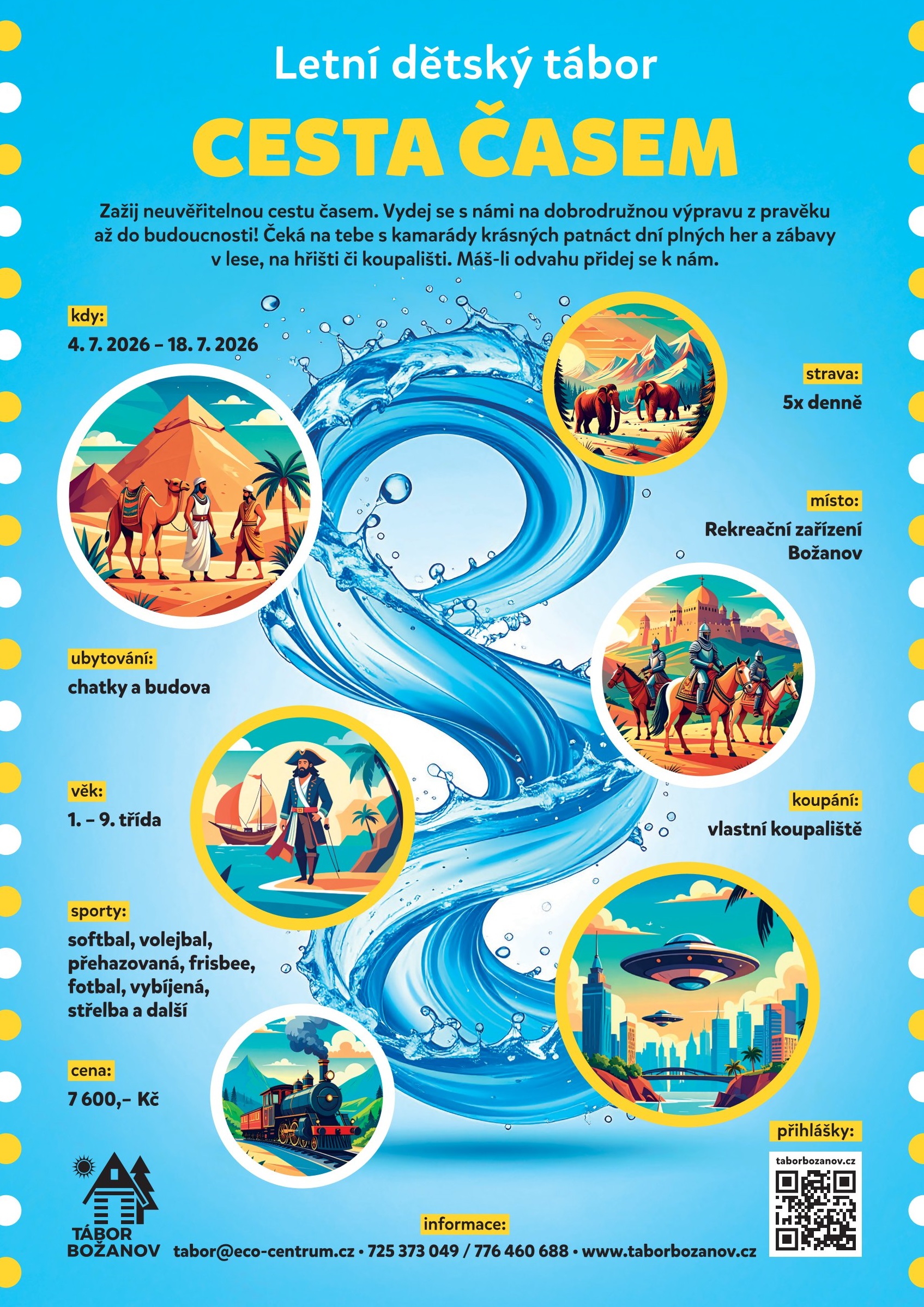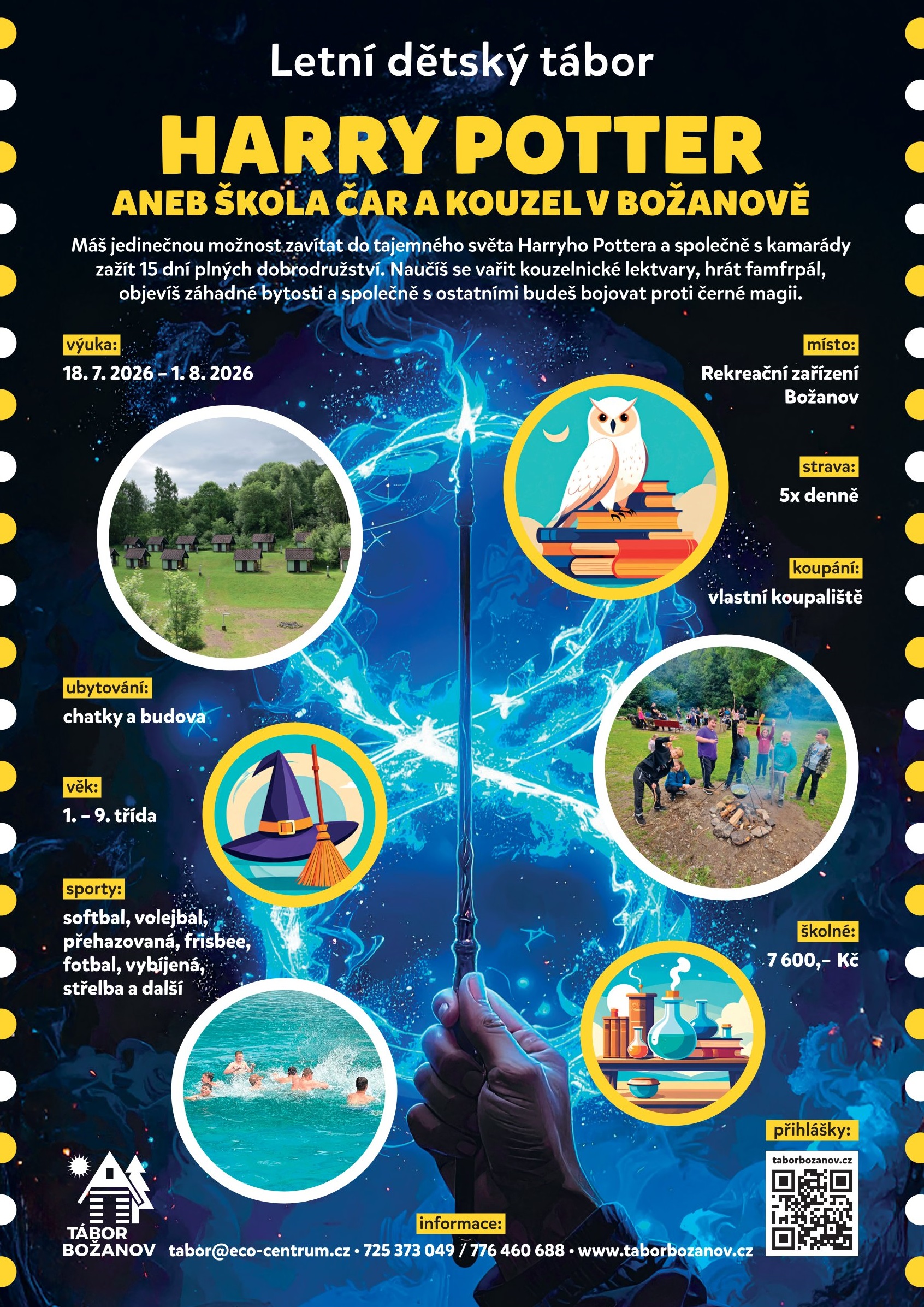 Areál Božanov slouží mnoho let k dětské rekreaci a patří mezi tradiční tábory. V roce 2026 připravuje dva běhy. 1. běh CESTA ČASEM od 4.7. - 18.7. 2026 2 běh HARRY POTTER aneb škola čar a kouzel v Božanově od 18.7. - 1.8. 2026