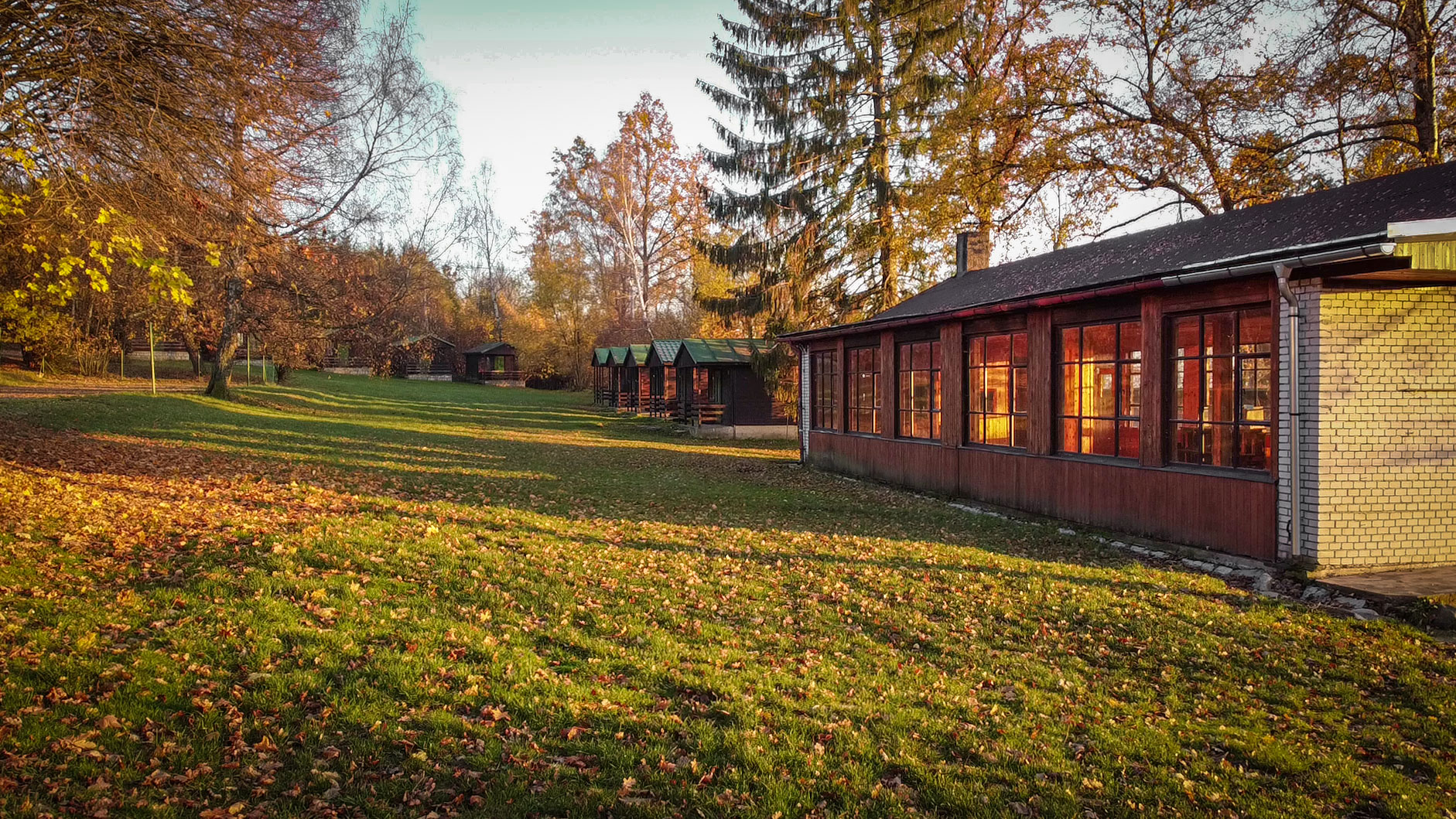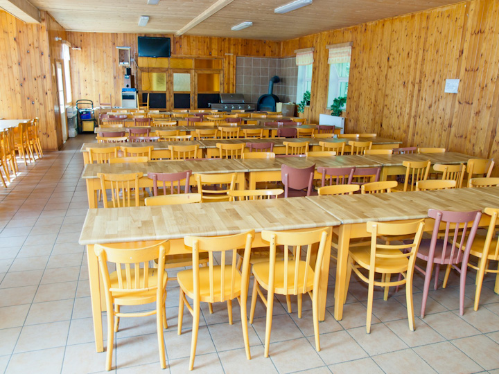- V hlavní budově najdeme se zázemím kuchyně, prostornou jídelnou a učebny. Dále je také možnost využití společenské místnosti, sportovní haly (100 m2), venkovní posezení a party stan.