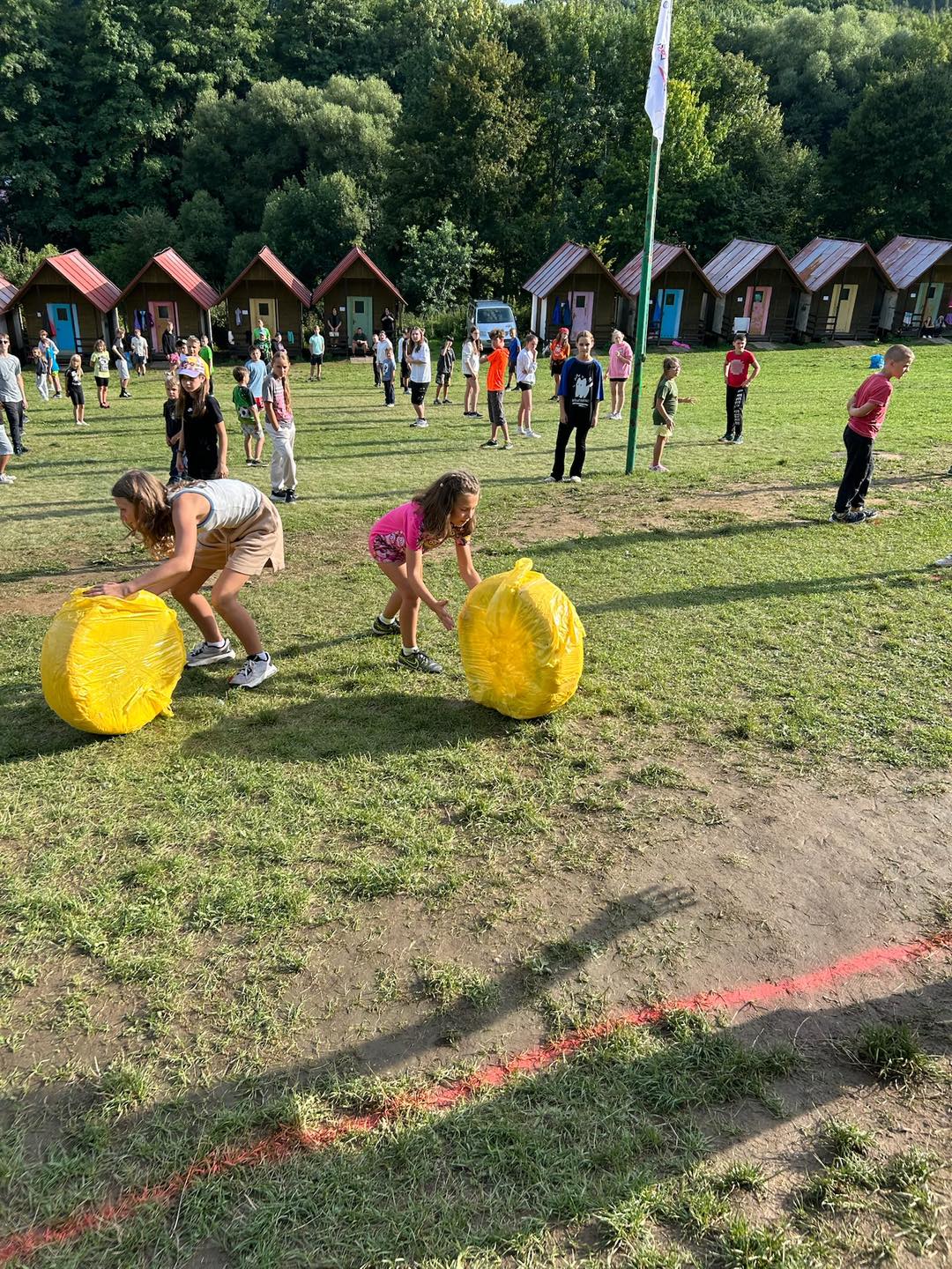 Při nepříznivém počasí budou děti hrát hry v postaveném krytém stanu či jídelně.