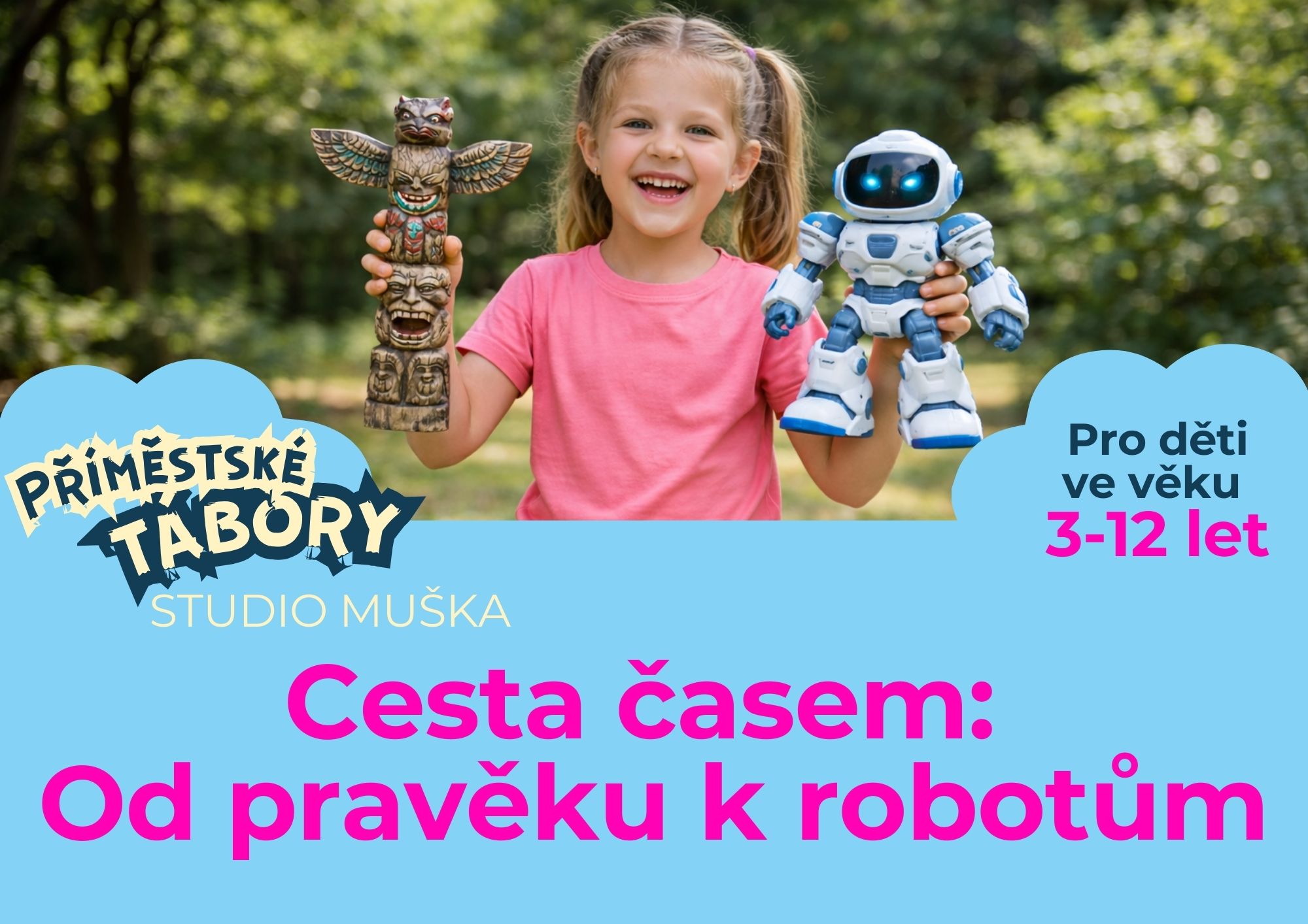Cesta časem Co kdyby se děti mohly na jeden týden stát opravdovými cestovateli časem? Na tematickém příměstském táboře pro děti od 3 do 12 let „Cesta časem „se děti vydají na dobrodružnou výpravu do minulosti, přítomnosti i budoucnosti. K