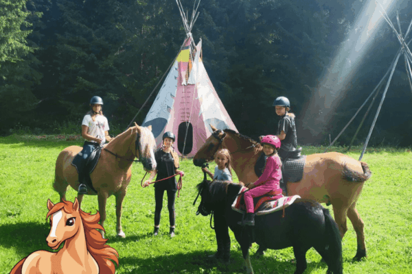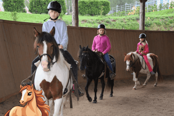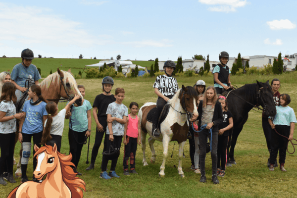 Po celou dobu mají děti k dispozici profesionální, plně vybavený jezdecký areál, který je vhodný jak pro úplné začátečníky, tak pro zkušenější malé jezdce. K dispozici je pestrý výběr koní – od roztomilých minipony až po majestátní fríského koně – aby si každé dítě našlo svého ideálního koňského parťáka.