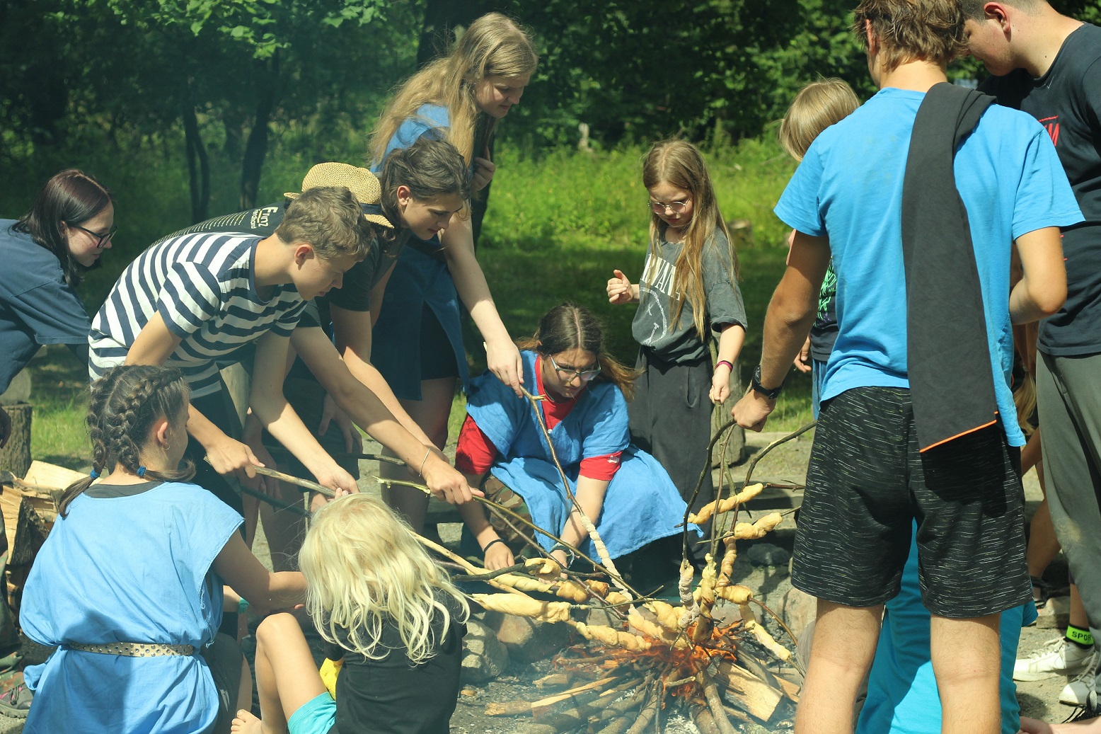 Alfou a omegou našeho tábora je totiž celotáborová hra s propracovaným příběhem, který nás každý rok zavede do trochu jiného světa (na našich stránkách se dočtete, co jsme zažili v minulých letech). K tomu samozřejmě patří různé scénky a tématicky zaměřené hry a celou atmosféru pak doplní kostýmy. Zároveň ale na našich táborech nikdy nesmí chybět zpívání u táboráku, koupání v rybníce, noční hra nebo nějaký ten výlet a spaní pod širákem.
